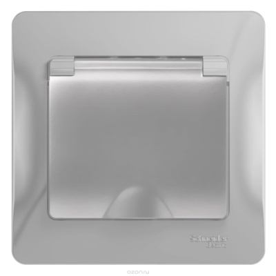 Schneider Electric Glossa Алюминий Розетка с заземляющими контактами со шторками с крышкой в сборе с рамкой IP20 скрытая установка GSL000346