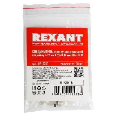 Соединитель термоусаживаемый под пайку L-26 мм 0.25-0.34кв.мм (ПК-т 0.34) бел. Rexant 08-0751