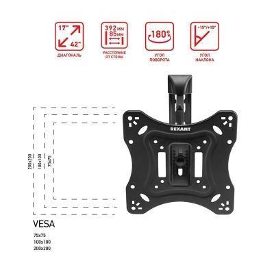 Кронштейн для LED телевизора 17-42дюйм наклонно-поворотный Rexant 38-0070