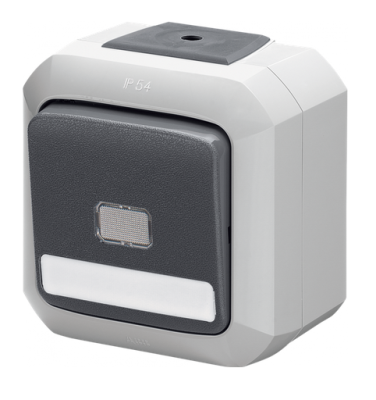 Выключатель кнопочный одноклавишный ABB Variant+ IP54 с прозрачной линзой и полем для надписи серый