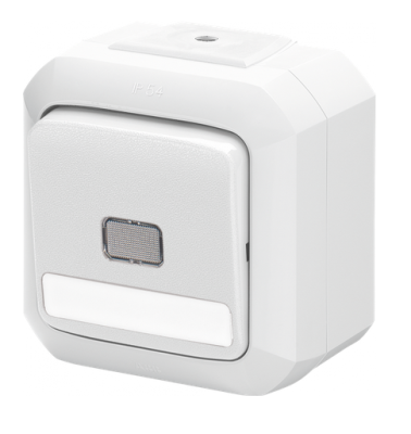 Выключатель кнопочный одноклавишный ABB Variant+ IP54 с прозрачной линзой и полем для надписи белый