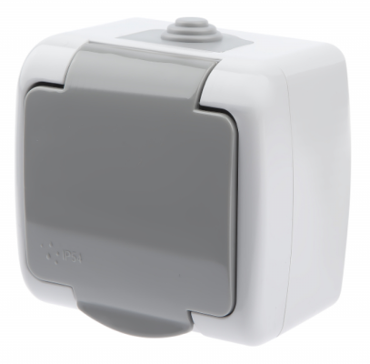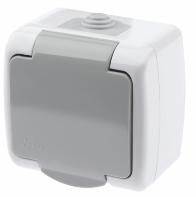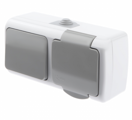 5-701-03 Intro Блок розетка 2P+E + выключатель, 10(16)А-250В, ОУ, Atlantic, IP54, серый