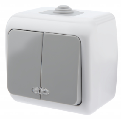 5-105-03 Intro Выключатель двойной с подсветкой, 10А-250В, IP54, ОУ, Atlantic, серый