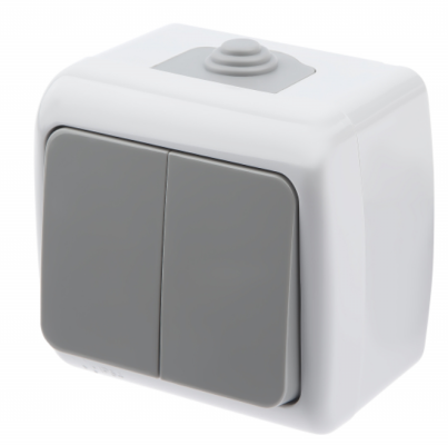 5-104-03 Intro Выключатель двойной, 10А-250В, IP54, ОУ, Atlantic, серый