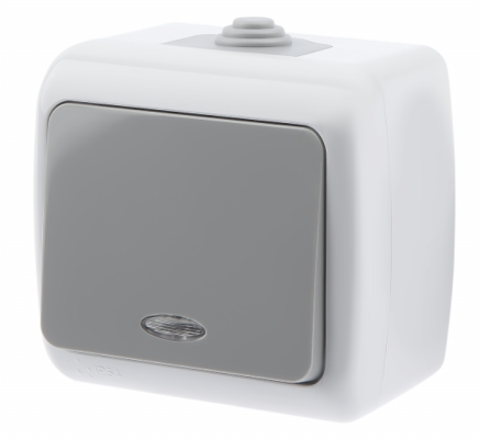 5-102-03 Intro Выключатель с подсветкой, 10А-250В, IP54, ОУ, Atlantic, серый