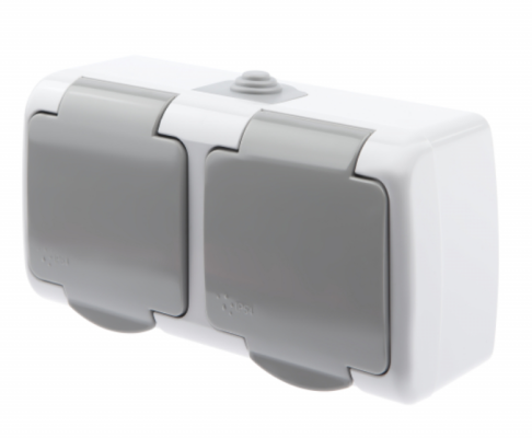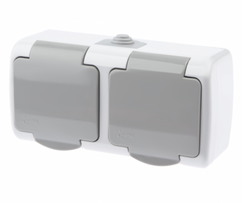 5-203-03 Intro Розетка 2х2P+E Schuko, 16А-250В, IP54, ОУ, Atlantic, серый