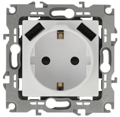 14-4109-01 ЭРА Розетка 2P+E 16A-250В, штор. с 2xUSB 5В-3А, Эра Elegance, белый