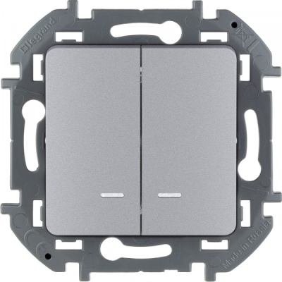 Legrand INSPIRIA Алюминий Выключатель 2-клавишный c подсветкой IP20 скрытая установка 673632