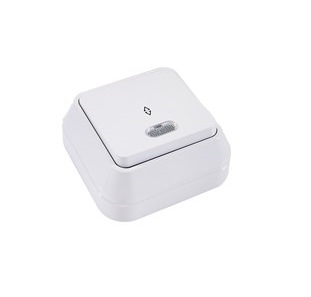 Makel Менекше Белый Выключатель 1-клавишный с подсветкой проходной IP20 открытая установка 45125
