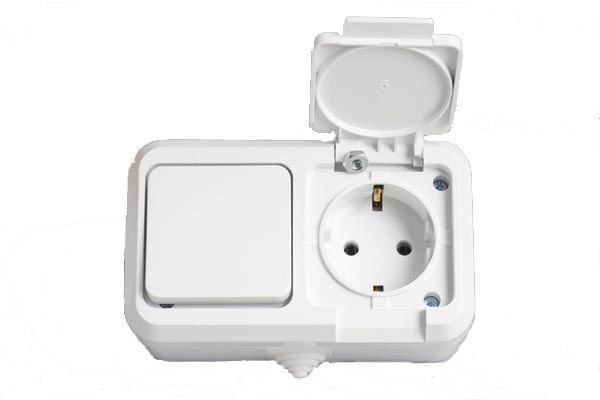 Makel Менекше Белый Блок Выключатель 1-клавишный + Розетка с крышкой IP44 открытая установка 18350