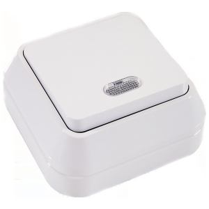 Makel Менекше Белый Выключатель 1-клавишный с подсветкой IP20 открытая установка 45121