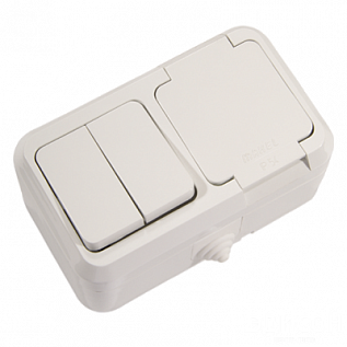 Makel Менекше Белый Блок Выключатель 2-клавишный + Розетка с крышкой IP44 открытая установка 18351