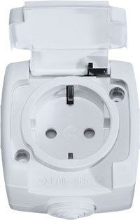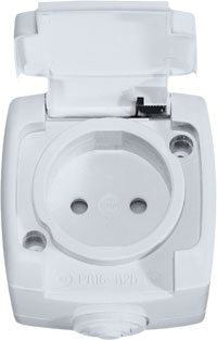 Schneider Electric Рондо Белый Розетка открытая установка IP44 (250В, 10А, защитные шторки) (РА10-125Б-би) RA10-125B-BI