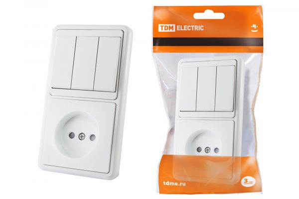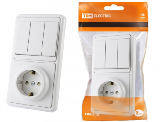 TDM Блок комбинированный БКВР 3-клавишный выключатель + розетка 2П с защитными шторками SQ1813-0006