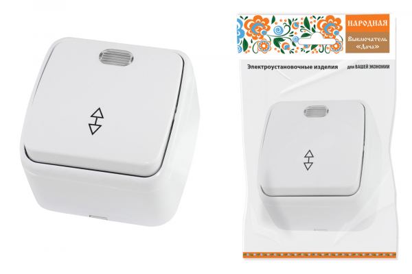 TDM Народная Дача Белый Переключатель на 2 направления 1-клавишный открытой установки с подсветкой IP20 10А