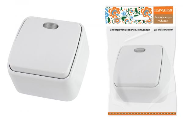 TDM Народная Дача Белый Выключатель 1-клавишный открытой установки с подсветкой IP20 10А