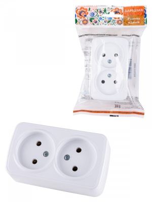 TDM Народная Дача Белый Розетка 2-местная 2П открытой установки IP20 10А