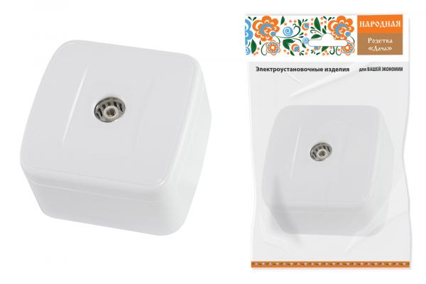 TDM Народная Дача Белый Розетка TВ простая (0-2400 Гц, "мама") открытой установки, IP20