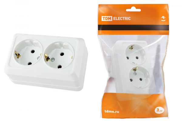 TDM Ладога Белый Розетка 2-местная 2П+3 открытая установка IP20 16А 250В (керамика) SQ1801-0113
