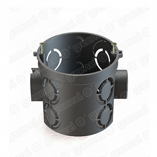 Для монтажа бытовых розеток, выключателей, светорегуляторов и иных приборов на винтах или металлических захватах в кирпичные или бетонные стены, при скрытой электропроводке. Присоединительные размеры 60мм, глубина 62мм ( в соединении с GE40003 глубина 92м