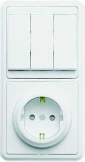 Блок БКВР-036 Бэлла (3-кл. выкл. + евророзетка с защ. шторками) бел. Кунцево 5847
