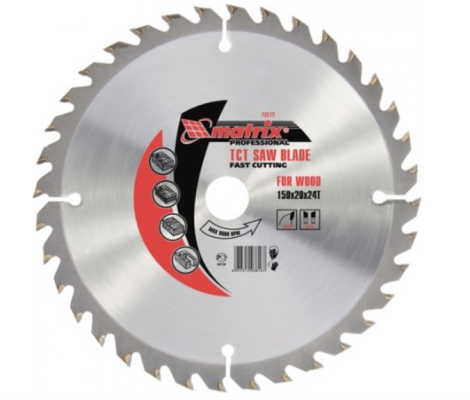 Пильный диск по дереву, 185 х 20мм, 24 зуба + кольцо 16/20// MATRIX Professional