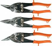 Ножницы по металлу SPARTA 250 мм, обрезиненные рукоятки, 3 штуки, ( в комплекте - прямые, левые, правые)