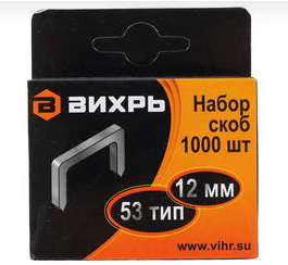 Скобы для степлера 12мм, тип 53, закаленные, 1000 шт. Вихрь