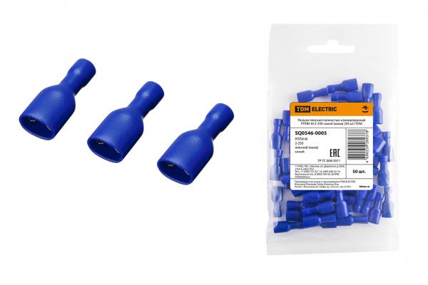 Разъем плоский полностью изолированный РППИ-М 2-250 синий (мама) (50 шт) TDM