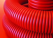 Двустенная труба ПНД гибкая для кабельной канализации д.90мм с протяжкой, SN8, в бухте 100м, цвет красный