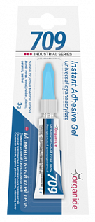 Клей универсальный Organide 709 гель 3 г. Однокомпонентныйклей-гель на основе этилцианакрилата с добавлением загустителей. Клей не растекается и не капает. Предназначен для пористых и не очень ровно прилегающих поверхностей. Подходит для работ на вертикальных поверхностях.