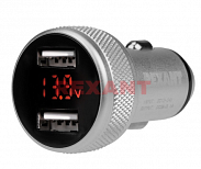 Автозарядка в прикуриватель 2хUSB с дисплеем (АЗУ) (1000+2100 mA) серебристая REXANT 18-1947