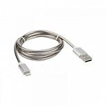 USB кабель для iPhone 5/6/7 моделей, шнур в металлической оплетке, цвет серебристый REXANT 18-4247