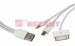 USB кабель 3 в 1 только для зарядки iPhone 5/iPhone 4/microUSB белый 18-1126