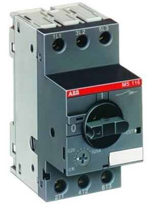 втомат фирмы АВВ типа MS116-6,3 на 50000 Ампер с регулируемой тепловой защитой на 4-6,3 Ампер для защиты электродвигателей Назначение: защита и запуск электродвигателей, коммутация двигателей вручную и защита их от короткого замыкания, перегрузки и обрыва фазы