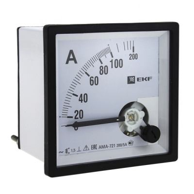 Амперметр AMA-721 аналоговый на панель (72х72) квадратный вырез 200А трансф. подкл. EKF