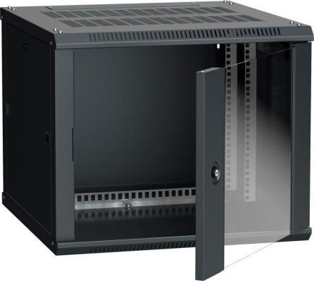 Шкаф настенный 19дюйм 12U 650х600х600мм TWB-1266-GP-RAL9004 стеклян. дверь черн. Hyperline 392634