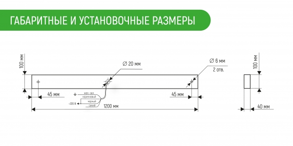 1200 × 100 × 40 мм