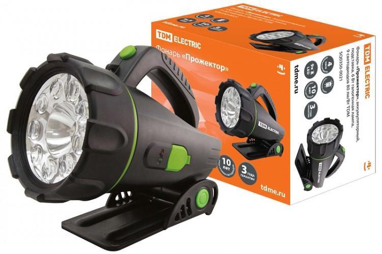 Фонарь "Прожектор", аккумуляторный, подставка, 6 Вт галогенная лампа, 9 светодиодов 80 лм/Вт | SQ0350-0021 | TDM