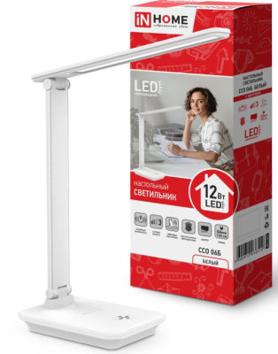 IN HOME ССО 06Б 12Вт 600Лм сенсор 3 уровня яркости, с подставкой под телефон, с адаптером БЕЛЫЙ