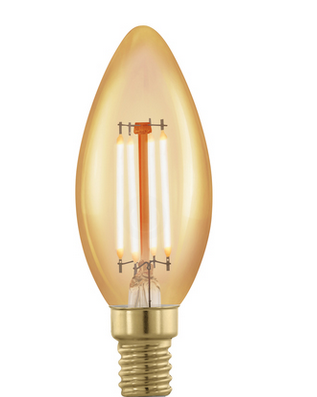 Светодиодная лампа Eglo С37 4Вт 1700K E14 филамент. диммир. "Золото"