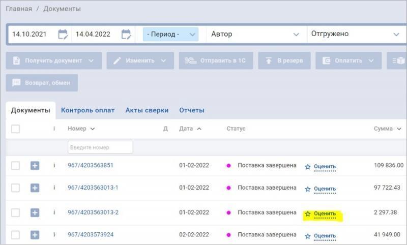 Если вы покупаете как юридическое лицо, зайдите в раздел «Документы», отберите заказы в статусе «Отгружено» и нажмите на ссылку «Оценить». Если вы покупаете как физическое лицо — зайдите в раздел «Заказы», во вкладку «История заказов».